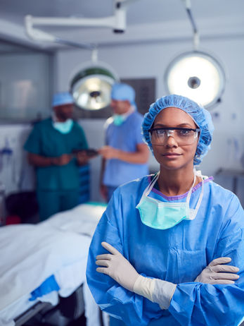 Hair pulled back or neatly styled. Surgeons do not negotiate with loose strands.